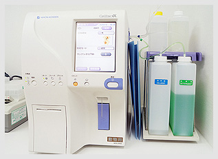 白血球数の増減や貧血の有無、血小板の数を調べる検査機器です。