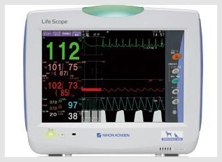 麻酔中の心拍、呼吸、血圧、血液中の酸素濃度などをモニタリングする機械です。この機器により、動物の麻酔中の異常をいち早く感知し、対応することが可能になります。