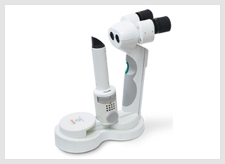 眼圧を測定する機器です。従来の眼圧計と違い、局所麻酔が不要ですので迅速に眼圧が測れます。緑内障やブドウ膜炎などの病気の診断に利用します